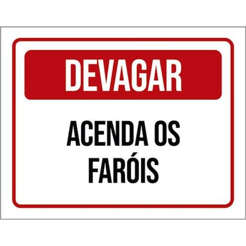 Kit 10 Placas Devagar Acenda Os Faróis Verm 36x46 Placas de sinalizaço fabricadas com poliestireno de alto impacto PSAI de 2mm e impressão ultravioleta.
