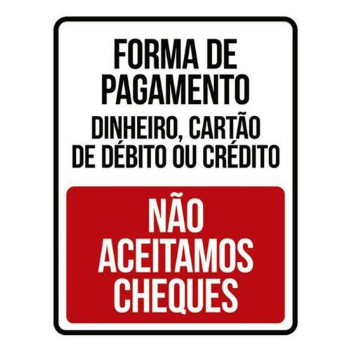 Kit 10 Placas Forma Pagamento Não Aceitamos Cheques 36x46 Placas de sinalizaço fabricadas com poliestireno de alto impacto PSAI de 2mm e impressão ultravioleta.