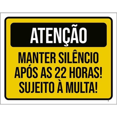 Kit 10 Placas Manter Silêncio Após 22 Horas Multa 36x46 Placas de sinalizaço fabricadas com poliestireno de alto impacto PSAI de 2mm e impressão ultravioleta.