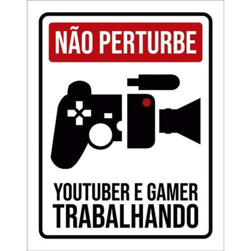 Kit 10 Placas Não Perturbe Youtuber Gamer Trabalhando 36x46 Placas de sinalizaço fabricadas com poliestireno de alto impacto PSAI de 2mm e impressão ultravioleta.