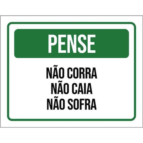Kit 10 Placas Pense Não Corra Não Caia Não Sofra 36x46 Placas de sinalizaço fabricadas com poliestireno de alto impacto PSAI de 2mm e impressão ultravioleta.
