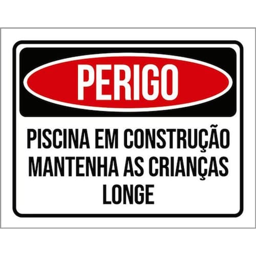 Kit 10 Placas Perigo Piscina Construção Crianças Longe Placas de sinalizaço fabricadas com poliestireno de alto impacto PSAI de 2mm e impressão ultravioleta.