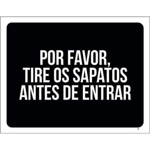 Kit 10 Placas Por Favor Tire Sapatos Antes Entrar 36x46 Placas de sinalizaço fabricadas com poliestireno de alto impacto PSAI de 2mm e impressão ultravioleta.