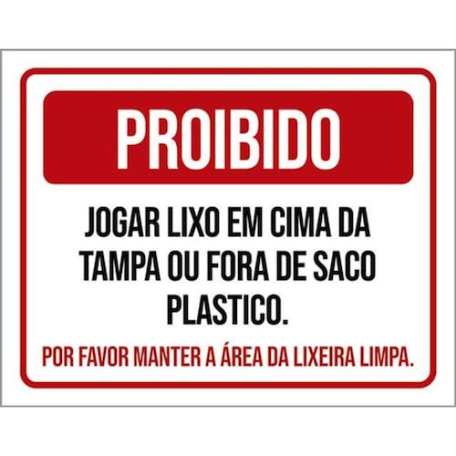 Kit 10 Placas Proibido Jogar Lixo Tampa Fora Saco Plástico Placas de sinalizaço fabricadas com poliestireno de alto impacto PSAI de 2mm e impressão ultravioleta.