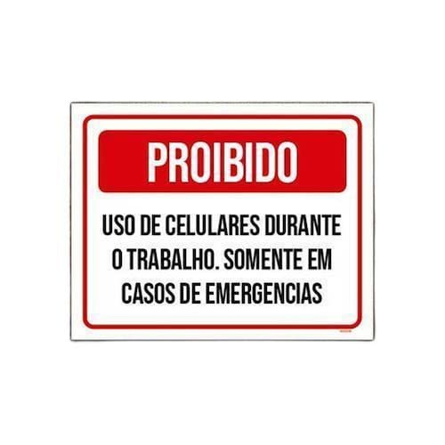 Kit 10 Placas Proibido Uso Celulare Durante Trabalho - Informações do Produto: Placas decorativas fabricadas com poliestireno de alto impacto PSAI de 2mm e adesivo vinil automotivo de alta performance. - Medidas: 18cm x 23cm 10 Unidades - Fixação: Todas as placas possuem adesivo dupla face para aplicação em qualquer tipo de superfície lisa. Garantia de 12 meses e disponibilidade imediata. Marca: Sinalizo
