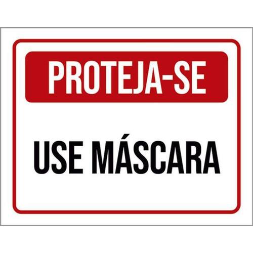 Kit 10 Placas Proteja-se Use Máscara Vermelha 36x46 Placas de sinalizaço fabricadas com poliestireno de alto impacto PSAI de 2mm e impressão ultravioleta.