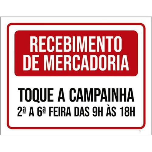Kit 10 Placas Receimento Mercadoria Toque Campainha 36x46 Placas de sinalizaço fabricadas com poliestireno de alto impacto PSAI de 2mm e impressão ultravioleta.