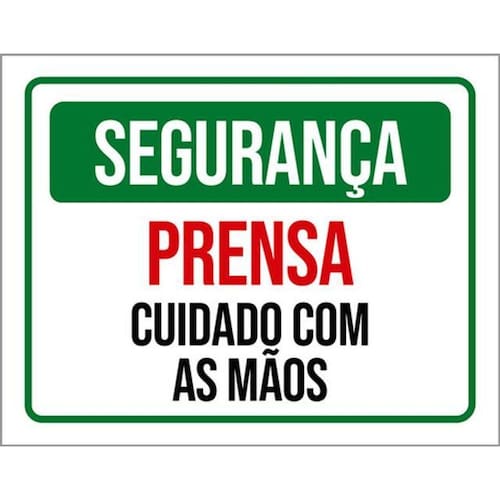 Kit 10 Placas Segurança Prensa Cuidado Com As Mãos 36x46 Placas de sinalizaço fabricadas com poliestireno de alto impacto PSAI de 2mm e impressão ultravioleta.