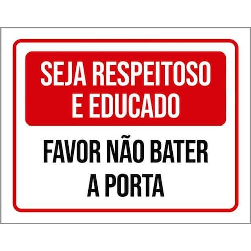 Kit 10 Placas Seja Respeitoso Educado Não Bater Porta 36x46 Placas de sinalizaço fabricadas com poliestireno de alto impacto PSAI de 2mm e impressão ultravioleta.