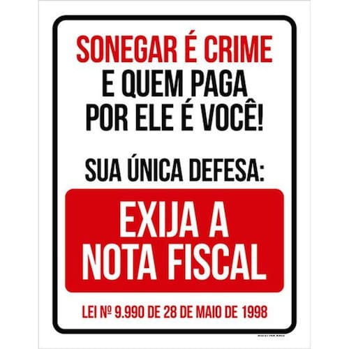 Kit 10 Placas Sonegar Crime Exija 36X46