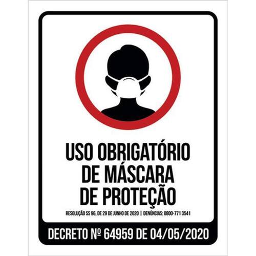 Kit 10 Placas Uso Obrigatório De Máscara De Proteção 36x46 Placas de sinalizaço fabricadas com poliestireno de alto impacto PSAI de 2mm e impressão ultravioleta.