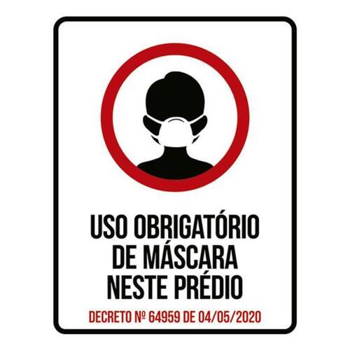 Kit 10 Placas Uso Obrigatório Máscara Neste Prédio 36x46 Placas de sinalizaço fabricadas com poliestireno de alto impacto PSAI de 2mm e impressão ultravioleta.