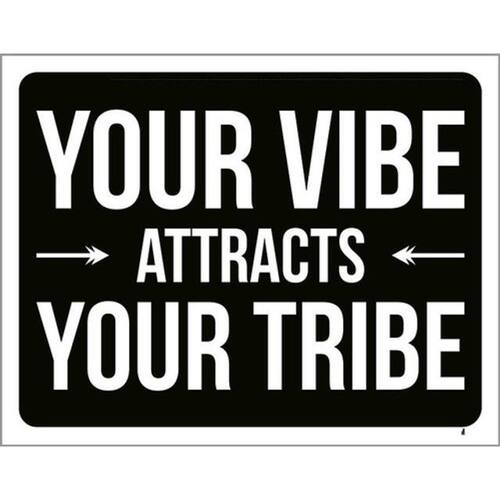 Kit 10 Placas Your Vibe Attracts Your Tribe 36x46 Placas de sinalizaço fabricadas com poliestireno de alto impacto PSAI de 2mm e impressão ultravioleta.