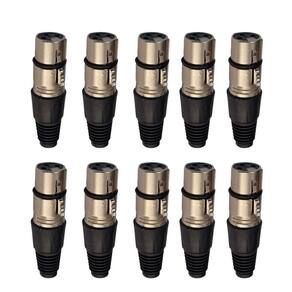Kit 10 Plug Xlr Fêmea Metal Simples Cromado Mxt