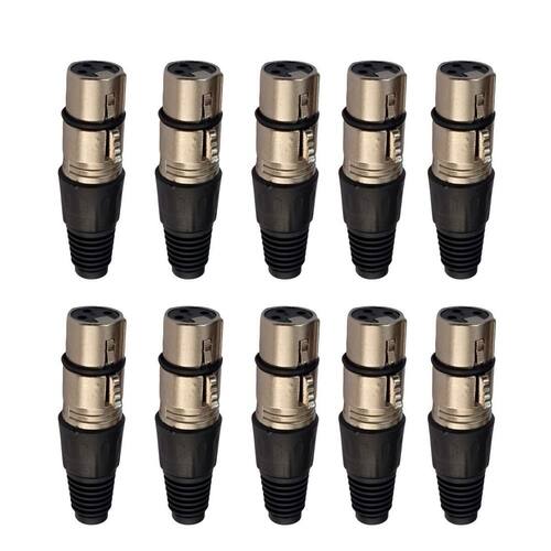 KIT 10 Plug XLR Fêmea Metal Simples Cromado MXT