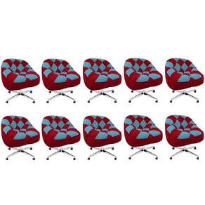 Kit 10 Poltrona Paloma Escritório Sala Giratória Metal Rodízio Sintético Vermelho E Sintético Azul Turquesa - Malessa Decor