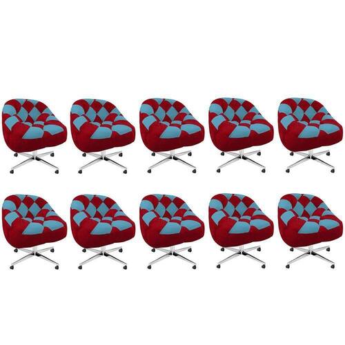 Kit 10 Poltrona Paloma Giratória Metal Rodízio Sintético Vermelho E Sintético Azul Turquesa