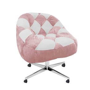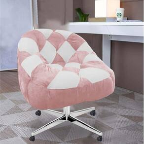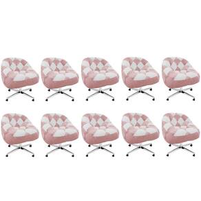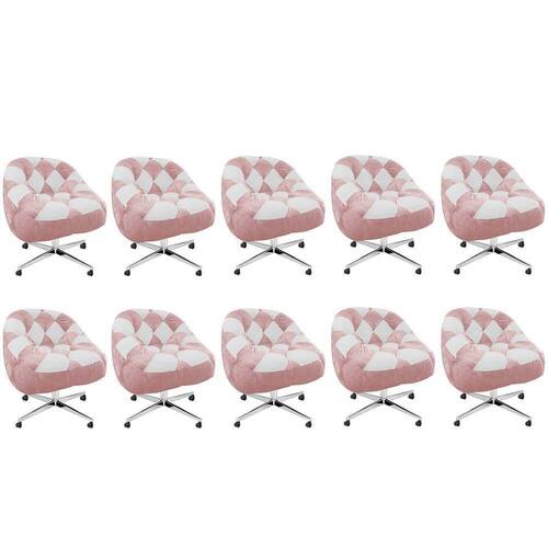 Kit 10 Poltrona Paloma Escritório Sala Giratória Metal Rodízio Suede Rosa Bebê E Suede Branco - Dominic Decor