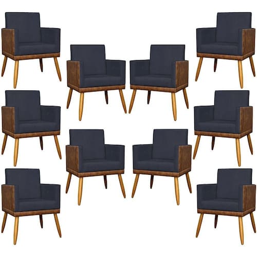 KIT 10 POLTRONAS LIS CORINO E SUEDE CORES PÉ PALITO 30 CM CASTANHO