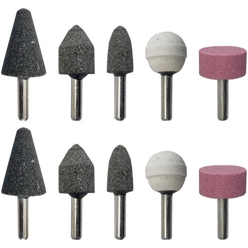 Kit 10 Pontas Montadas Rebolo Abrasivo Haste 6mm Multiuso Bravo Tools - Marca: Bravo Tools - Referência: BV1006 - Indicada para limpezas e acabamentos em superfícies - Diâmetro da haste: 6mm - 2 Ponta Cilíndrica Branca 22 x 22mm Grão Fino - 2 Ponta Tipo Roda Rosa 24 x 12,5mm Grão Médio - 2 Ponta Tipo Bala Cinza 16 x 26mm Grão Grosso - 2 Ponta Tipo Árvore Cinza 24 x 35mm Grão Grosso - 2 Ponta Tipo Cônica Cinza 19 x 27mm Grão Grosso - Material da ponta: Óxido de alumínio Corundum - As pontas montadas são indicadas para uso geral - Uso em retificadeiras e furadeiras de qualquer marca com mandril de 6mm - Indicada para afiação, esmerilhamento e desbaste em metais, joias, pedras preciosas, vidro, entre outros materiais - Ideal para trabalhos detalhados em uma variedade de superfícies, oferecendo remoção de material suave e precisa - Seu formato facilita o trabalho em locais de difícil acesso - Velocidade máxima: 25.000rpm - Peso bruto: 90 gramas - : 90 dias contra defeitos de fabricação Marca: Não Informado Ean: 7734625974844