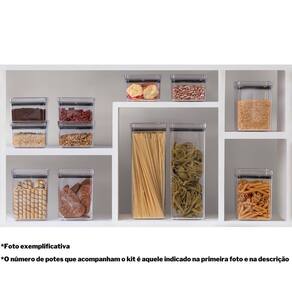 Sobre o produto: kit com 10 potes herméticos paramount . O kit é composto por: - 4 unidades do pote hermetic lumini quadrado 480 ml 10cm x 10cm x 7cm cxlxa - 4 unidades do pote hermetic lumini quadrado 1 lt 11cm x 11cm x 14,5cm cxlxa - 2 unidades do pote hermetic lumini quadrado 2,2 lts 11cm x 11cm x 28cm cxlxa . Todos os potes são fabricados no brasil com matéria-prima de altíssima qualidade 100% poliestireno , o que garante a segurança dos nossos produtos e confere um grau de translucidez incomparável; . Muito mais do que lindos, os potes paramount são extremamente funcionais, pois o fechamento hermético garante uma excelente vedação, preservando as características dos alimentos por muito mais tempo, além de evitar o contato com insetos e sujidades; . Ah, e o formato quadrado das bordas e das tampas permite o empilhamento dos potes, permitindo o melhor aproveitamento de espaço possível;