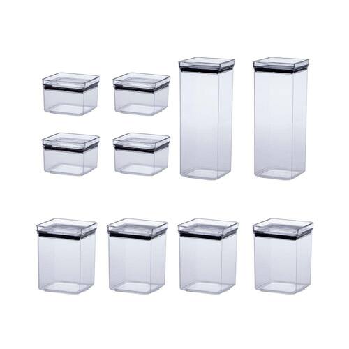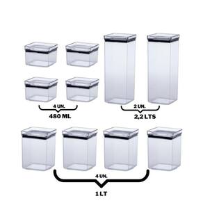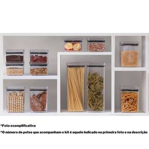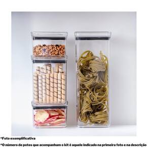 Sobre o produto: kit com 10 potes herméticos paramount . O kit é composto por: - 4 unidades do pote hermetic lumini quadrado 480 ml 10cm x 10cm x 7cm cxlxa - 4 unidades do pote hermetic lumini quadrado 1 lt 11cm x 11cm x 14,5cm cxlxa - 2 unidades do pote hermetic lumini quadrado 2,2 lts 11cm x 11cm x 28cm cxlxa . Todos os potes são fabricados no brasil com matéria-prima de altíssima qualidade 100% poliestireno , o que garante a segurança dos nossos produtos e confere um grau de translucidez incomparável; . Muito mais do que lindos, os potes paramount são extremamente funcionais, pois o fechamento hermético garante uma excelente vedação, preservando as características dos alimentos por muito mais tempo, além de evitar o contato com insetos e sujidades; . Ah, e o formato quadrado das bordas e das tampas permite o empilhamento dos potes, permitindo o melhor aproveitamento de espaço possível;
