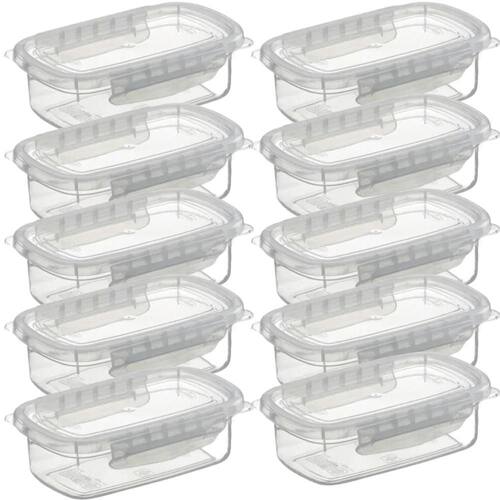 Kit 10 Potes Raso Plástico com Travas - 270ml BPA Free Praticidade e segurança na medida certa Ideal para quem precisa de uma marmita compacta, o Pote Raso Plástico com Travas de 270ml é perfeito para levar pequenas porções, lanches, saladas ou acompanhamentos no dia a dia. Com formato retangular e tamanho prático 17 x 11 x 6 cm , ele cabe facilmente em bolsas, mochilas e organizadores. Produzido em material resistente e livre de BPA, oferece total segurança para o armazenamento dos alimentos. Suas travas laterais garantem uma vedação firme, evitando vazamentos e preservando o frescor dos ingredientes. Características principais: Capacidade: 270ml Medidas: C 14,0cm L 10,0cm A 4,0cm Tampa com travas laterais - vedação segura contra vazamentos Material resistente e BPA Free - ideal para uso frequente Formato raso - ótimo para porções leves e marmitas funcionais Marca: Não Informado