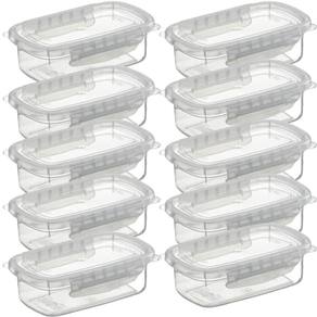 Kit 10 Potes Raso Plástico com Travas - 270ml BPA Free Praticidade e segurança na medida certa Ideal para quem precisa de uma marmita compacta, o Pote Raso Plástico com Travas de 270ml é perfeito para levar pequenas porções, lanches, saladas ou acompanhamentos no dia a dia. Com formato retangular e tamanho prático 17 x 11 x 6 cm , ele cabe facilmente em bolsas, mochilas e organizadores. Produzido em material resistente e livre de BPA, oferece total segurança para o armazenamento dos alimentos. Suas travas laterais garantem uma vedação firme, evitando vazamentos e preservando o frescor dos ingredientes. Características principais: Capacidade: 270ml Medidas: C 14,0cm L 10,0cm A 4,0cm Tampa com travas laterais - vedação segura contra vazamentos Material resistente e BPA Free - ideal para uso frequente Formato raso - ótimo para porções leves e marmitas funcionais Marca: Não Informado Ean: 7895366935744