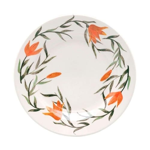 cada borda e pires recebem o desenho feito à mão da flor de cor laranja junto de