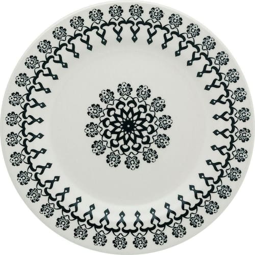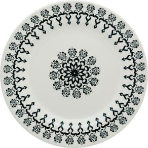 A cor preta é básica e neutra, um verdadeiro curinga na hora de montar a mesa. Nessa louça, colocamos a cor preta numa estampa mais alegre e jovial, perfeita para quem prefere um formato de pratos tradicional com uma decoração mais alegre. A xícara preta, sem decoração, cria uma linda composição com as demais peças.
