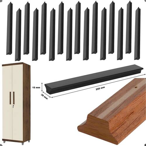 Kit 10 Puxador Combate Multiuso Armario Cozinha Balcão Bufet - Cor: Preto
