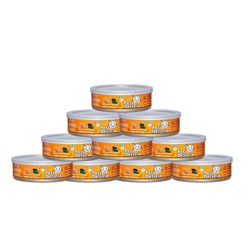 Kit 10 Ração Úmida Pet Delícia Gatos Frango Com Mamão - 110g - Indicado para gatos; - Indicado para controle de peso; - Saúde Intestinal; - Hidratação Ideal. Frango com mamão é uma deliciosa combinação das melhores partes do frango, vegetais e pedaços de mamão. Essa receita agrega umidade e balanceamento ideal e ingredientes funcionais como mamão de forma natural que melhore o sistema digestivo. Fibras e prebióticos auxiliam na saúde intestinal do gato. Rica em ômega 6 e 3, extremamente leve e saborosa, e indicada para os felinos que necessitam de controle de peso e gordura corporal. Sem pozinhos esquisitos, corantes, transgênicos, sabores artificiais ou conservantes, dentro da lata, só o que seu companheiro precisa para viver saudável e feliz por muito mais tempo! Recomendação diária Peso do animal (kg) Quantidade (g) 0,5 33 g 0,5-1,0 33-66 g 1,0-1,5 66-98 g 1,5-2,0 98-131 g Acima de 2,0 kg acrescente mais 1 lata de 110g para cada 2 kg de peso do gato. Indicação de consumo sugerida considerando a necessidade calórica diária, sujeito a adaptações por atividade física ou metabolismo individual. Introduzir de forma gradativa ao longo de 1 semana. Sugere-se adequar a quantidade proporcionalmente como complemento (cada 100g deste alimento equivale aprox. 25g de ração seca). Ingredientes Frango: Cortes nobres como peito e moela de frango são ricas em proteínas, aminoácidos essenciais, minerais e vitaminas. O peito de frango é uma corte altamente digestível e de alto valor biológico. A moela é uma excelente fonte de selênio que promove a saúde do coração. Mamão:Mamão contém papaína que ajuda em evitar bolas de pelo. Auxilia para um bom funcionamento intestinal, mas também do sistema digestivo em geral. Reduz a formação de ácidos no corpo, diminuindo o risco de doenças degenerativas e fortalece o sistema imunológico. Inhame:Rico em potássio e alta digestibilidade com boa conversão de energia. Fonte de fibras e prebióticos (inulina), fortalecendo o sistema imunológico. Ervilhas:Rica em fibras e boa fonte de proteínas dos carotenoides luteína e zeaxantina, e minerais. Ao contrário da maioria das leguminosas, é de fácil digestão e fonte de carboidratos de baixo índice glicêmico. Ajuda a controlar os níveis de colesterol no sangue.
