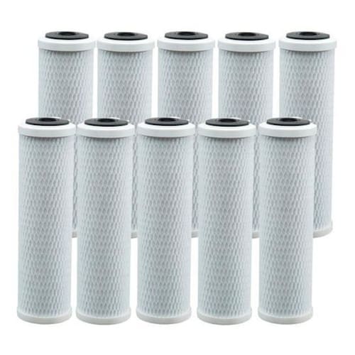 Kit 10 Refil Filtro 9.3/4 Carbon Block Carvão Ativado Carcaça KIT COM 10 FILTROS Filtro Refil Carbon Block Carvão Ativado para Filtros Carcaças de 9.3/4 de Altura São 10 filtros iguais. Ideal para retenção de partículas e remoção de cloro ponto de água para consumo Os filtros de carvão ativado possuem ótima eficiência na remoção de cloro. Auxilia na retenção de sólidos e sedimentos suspensos na água, além de reduzir cor e turbidez. Preparação de alimentos e bebidas sem cloro, gostos e odores desagradáveis. Filtro de carvão ativado pode ser instalado em cozinhas, na bancada ou sob a pia. Antes de bebedouros, máquinas de lavar, máquinas de suco, gelo e café. Ideal para casas, restaurantes, escolas, hotéis, entre outros. Refil de Encaixe - Sem Rosca serve em todas as carcaças de 9.3/4 - com rosca ou sem rosca Instalação: Ponto de Uso POU Altura: 9.3/4 Diâmetro do filtro: 2.1/2 Classe de Retenção de Partículas: Classe III = 5 a 15 micra Classe de Remoção de Cloro: Clase I acima de 75% Vazão recomendada: no máximo 180 litros/hora Filtro de acordo com a Norma NBR 14908:2004, da ABNT. Vida útil aproximada: 6 meses ou 8000 litros