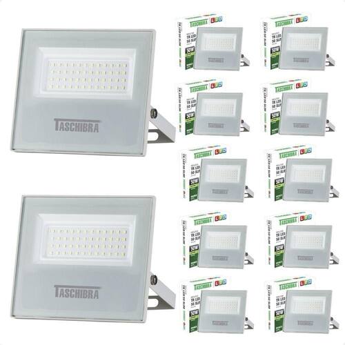 Kit 10 Refletores Taschibra Led TR Slim 50W Verde Branco Bivolt