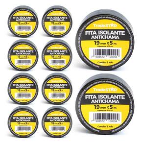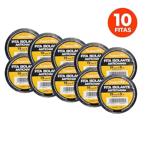 Kit 10 Rolos Fita Isolante Antichama 19mm X 5 Metros Preta