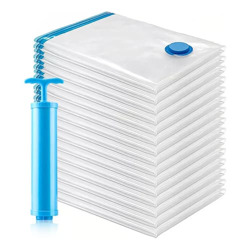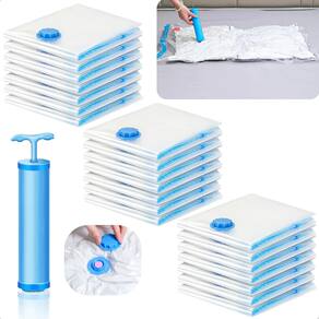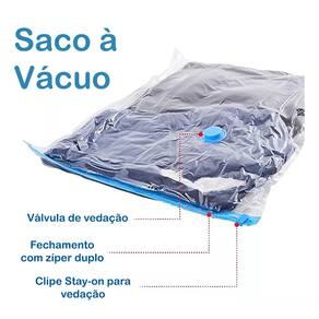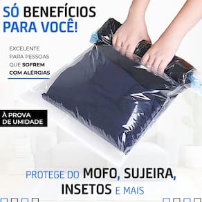 Possui sistema a vácuo que permite triplicar o espaço de armazenamento, além de ser reutilizável, impermeável e prático, protegendo suas peças da umidade, poeira, mofo, sujeira e insetos.