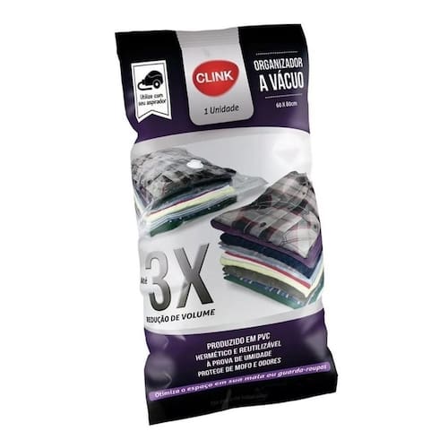 Sacos organizadores resistentes e duráveis, proporcionando a solução ideal para armazenar roupas, mantendo-as limpas, protegidas da umidade e do mofo. Acomodam grandes volumes de roupas, cobertores, travesseiros e outros itens que deseje guardar. Para remover o ar e comprimir os itens, pode-se utilizar uma bomba de sucção de ar ou um aspirador de pó. Assim, é possível ter mais espaço e organizar os pertences de maneira prática e eficiente.