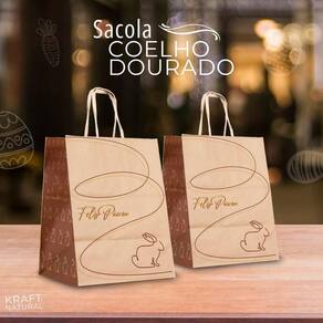 Kit 10 sacola de papel kraft coelho dourado p 13,5x8x19cm Bem-vindo à nossa loja