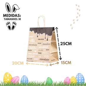 Kit 10 sacola de papel kraft pascoa palavras m 20x15x25cm Bem-vindo à nossa loja