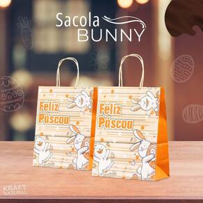 Kit 10 Sacola Kraft Ovos De Páscoa Bunny 17,5X8,5X21,5Cm
