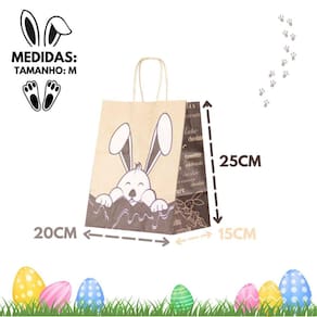 Kit 10 sacola kraft para ovos de páscoa coelho m 20x15x25cm Cor: kraft Bem-vindo à nossa loja