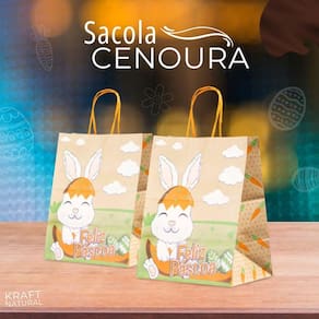 Kit 10 sacolas kraft para ovos de páscoa cenoura 23,5x17x28cm