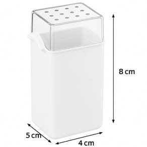 Dimensões de cada saleiro: 5cm (C) x 4cm (L) x 8cm (A);