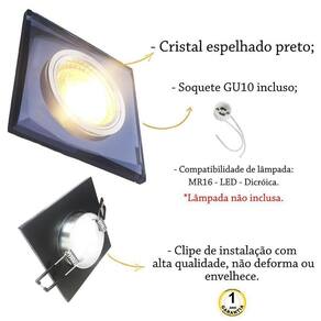 O spot cristal preto Lup17 traz para seu ambiente um ar de delicadeza e glamour. As suas bordas possui acabamento bisotê, dando um toque de leveza, além de criar uma moldura delicada no spot. É um produto para quem deseja uma iluminação sem abrir mão de uma decoração moderna e sofisticada. Fácil de instalar e ótimo para qualquer ambiente.Neste kit contem 10 spot Lup17.Descrição do spot:- Material: Cristal espelhado preto e alumínio Dimensões: Comprimento: 9 cm Largura: 9 cm Altura: 0,8 cm Recorte no teto : 6,5 cm- Soquete: GU10 incluso - Modelo da lâmpada: MR16 - LED - Dicroica- Quantidade de lâmpadas: 01- Potência máxima: 50W Lâmpada não inclusa.
