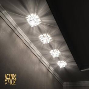 Spots De Embutir Cristal K9 Quadrado Este kit contém 10 unidades Descrição: - Material: Cristal Transparente e Metal Cromado; - Dimensões do cristal: CxLxA : 7 x 7 x 5 cm - Dimensões da base: CxL : 7 x 7 cm - Recorte no teto: CxL : 6x6 cm - Quantidade de Lâmpadas: 1 - Bocal: G9 - Potência Máxima: 40W - Tensão: Bivolt; - : 1 ano Lâmpada não inclusa Marca: Não Informado Ean: 7892393804661