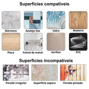 Superfícies Compatíveis: Para garantir uma fixação segura e durável, recomendamos instalar o suporte adesivo em superfícies lisas e impermeáveis, como: