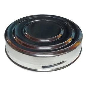 10 tampas para Baleiro antigo. Material ; Alumínio Diâmetro: 12cm Altura 3cm. Cor; alumínio natural Obrigado pela compra, sempre solicito após a compras das tampas que meus clientes me enviam fotos do gomo para verificar o modelo do gomo pois dos baleiros antigos tem 8 modelos diferentes de gomo.