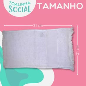 Especificações do Produto: Quantidade: 10 toalhas para manicure e pedicure Tamanho: 21cm x 31cm Peso Médio: 35g Tramas: 11 tramas, perfeitas para bordado ou personalização Composição: 100% algodão exceto detalhes decorativos Modelo: Toalha social