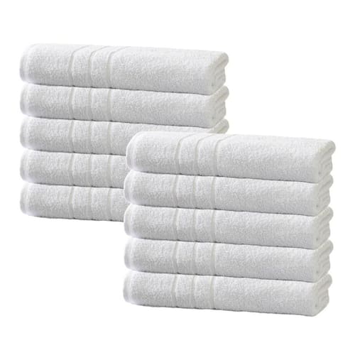 Contém: 10 peças 10 toalhas de rosto profiline roma 0,45x0,75m Alta absorção e maciez Resistência à lavagem industrial e ao cloro Gramatura: 440g/m Cor: branca