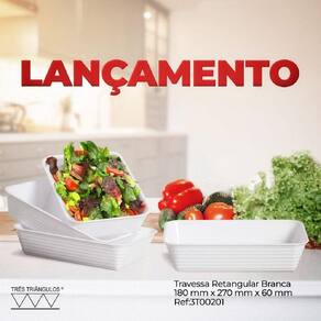 Kit 10 Travessa Retangular Linha Branca Festas 180 x 270mm Kit 10 Travessa Retangular Linha Branca Festas 180 x 270mmQualidade em sua cozinha servindo e valorizando seus preparos Travessa retangular Três Triângulos, ideal para servir saladas, petiscos, lanches, doces e diversos alimentos.Confeccionado em Poliestireno PS , possui designer retangular um ótimo acabamento, com frisos nas laterais e super-resistente.Linha Branca, qualidade e elegância, servindo seus convidados, suas festas e Eventos CONTEUDO10 Travessa Retangular Linha Branca Festas 180 x 270mm CARACTERÍSTICAS- Cor Branca- Material Poliestireno PS - Produto não tóxico INDICAÇÕES- Utilizar para Servir Alimentos- Pode ser levado ao freezer- Não Usar em Micro Ondas- Não Levar ao Forno- Lavar com esponja macia e não levar a Lava Louça Marca: Três TriângulosImagens meramente ilustrativas, outros objetos não acompanham o produto anunciado. DIMENSÕES INDIVIDUAISLargura: 18cmComprimento: 27cmAltura: 6cmCapacidade: 2250mlPeso: 130g